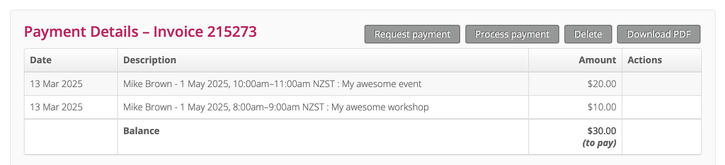 You'll then be able to send them an email, with a secure link to pay by credit card, by clicking on the "Request payment" button: