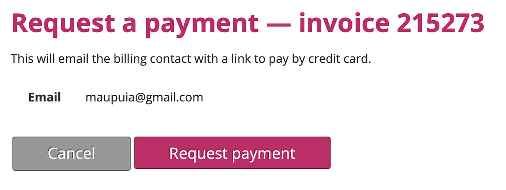You'll then be able to send them an email, with a secure link to pay by credit card, by clicking on the "Request payment" button: